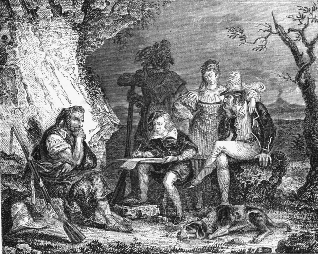 Früher: "An der Gründung Karlsruhes beteiligten sich Menschen aus Frankreich, Polen, Italien, der Schweiz und den vielen Ländern des damals noch zersplitterten Deutschlands. Der erste Bürgermeister der Stadt, Johann Sembach, stammte aus Straßburg." * Dass es nicht immer ohne Konflikt abging, zeigt der Karlsruher Ausdruck "Brigande-Deutsch". "Das italienische Wort scheint vom Verb brigare "sich streiten, sich schlagen" zu kommen und bezeichnet einen Räuber oder Partisanen, je nach politischem Standpunkt des Sprechers. Im romanischen Sprachraum (frz. brigants) wird es heute als Synonym für 'Streuner', 'Obdachloser' oder 'Bettler' benutzt, im Englischen (brigand) ist es ein Straßenräuber. Die beste karlsruherische Definition ist wohl "en Hergloffener". Die ersten häuserbauenden deutschen Ansiedler nannten die Gastarbeiter "Brigantis", bis sich der Spott gegen sie kehrte und aus allen Karlsruhern "Brigande" wurden. Dieses kalabresische Erbe ist das einzige Relikt einer in Karlsruhe gesprochenen Fremdsprache, des Italienischen, das Eingang in die werdende Mundart fand. " ** Das Bild rechts (Salvator Rosa: Briganti) zeigt, wie man sich früher Briganten vorstellte. Die bunt gekleideten Fremden, ihre anderen Sitten und ihre freie Lebensweise faszinierten die Deutschen, machten aber auch Angst.. Der junge Mann in der Mitte gehört sichtlich einem anderen Milieu an, malt aber begeistert ein Porträt vom Anführer der Bande.... |